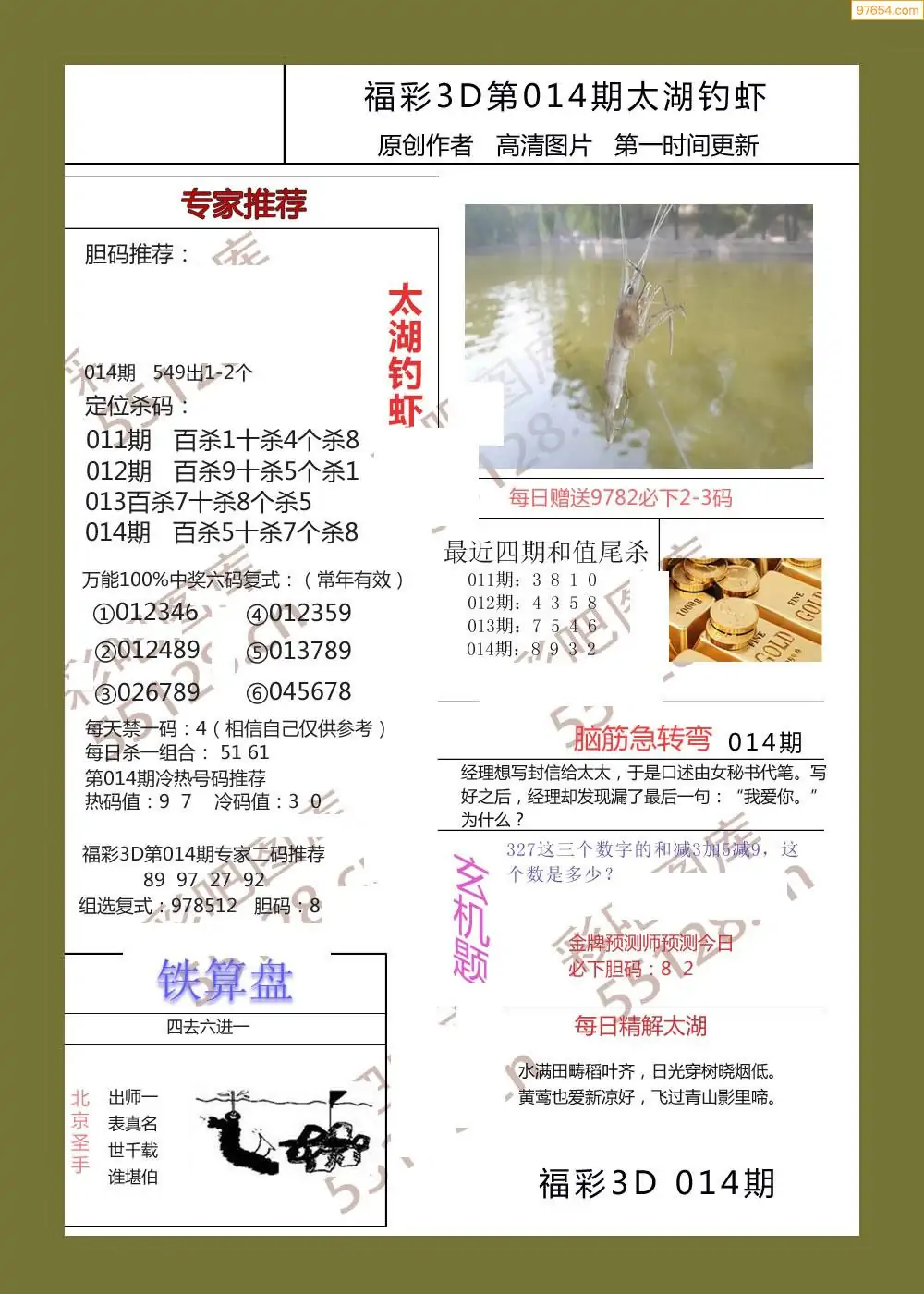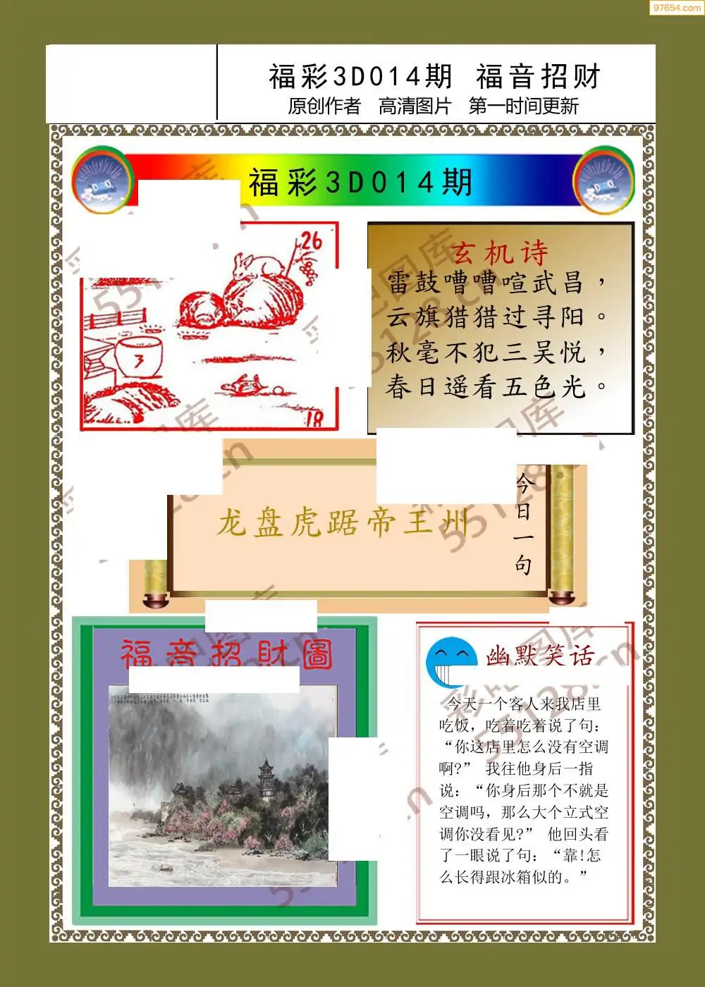 (3)2026014期3D预测总汇全图_福彩3d图谜字谜总汇