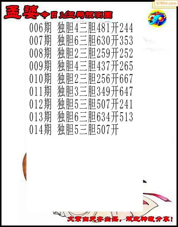 (8)26年013期今日3d各类彩报汇总