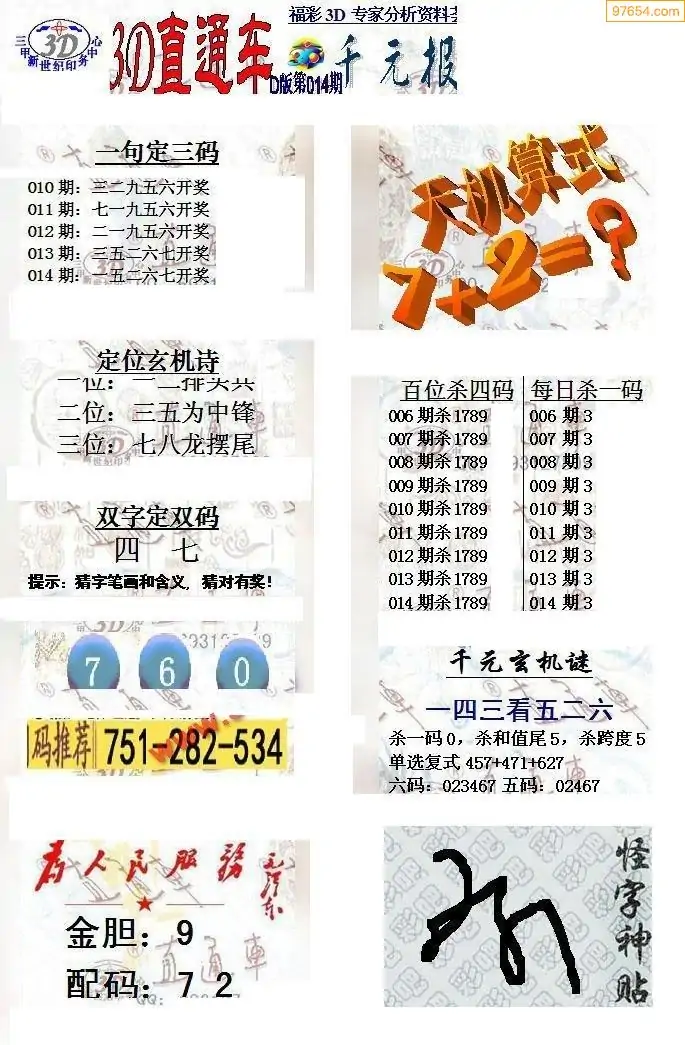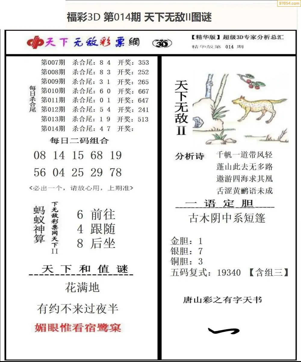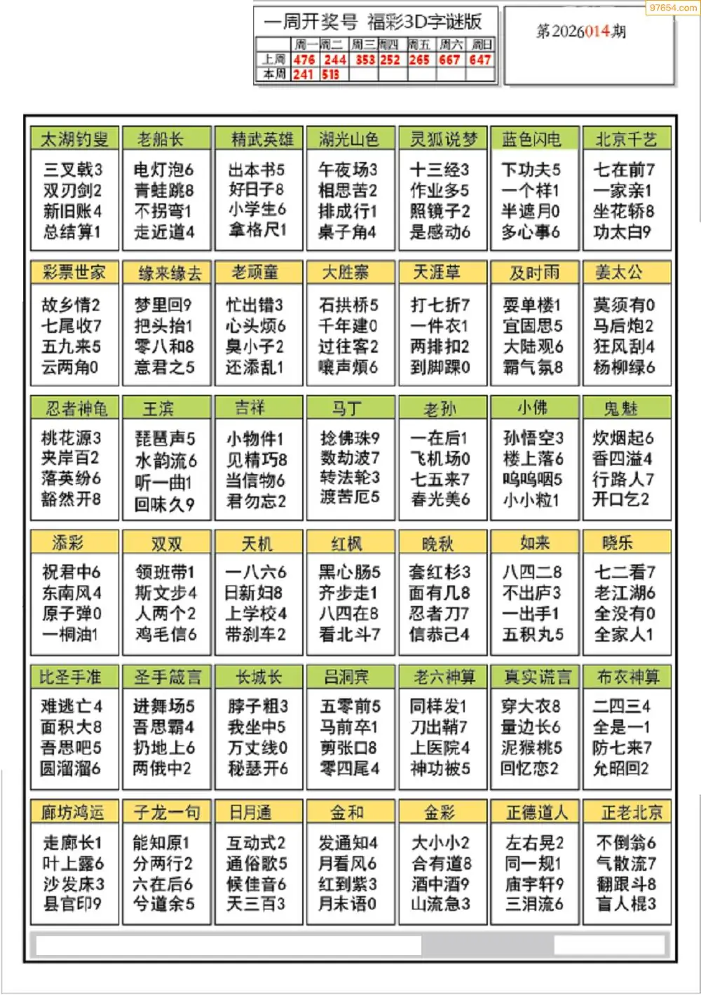 (3)2026014期3D预测总汇全图_福彩3d图谜字谜总汇