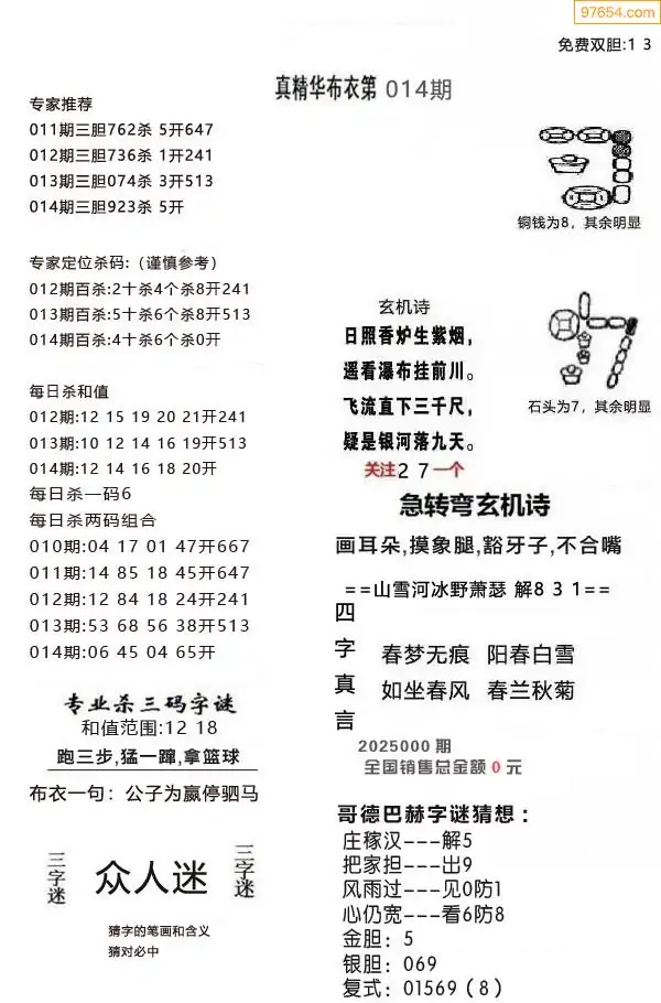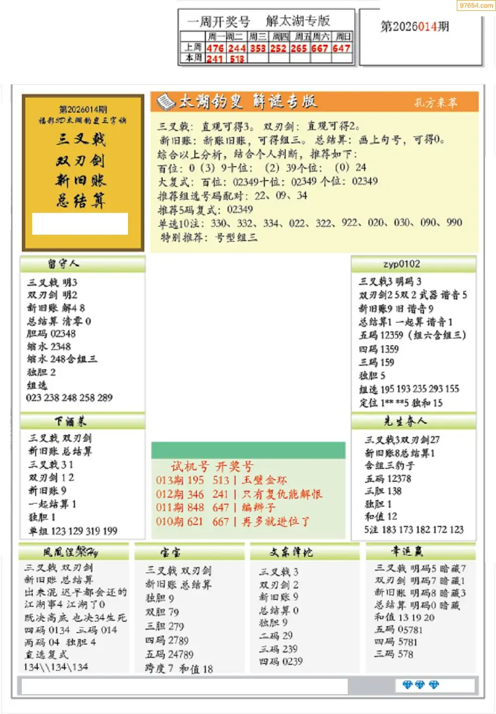 (2)26年013期本期3d图迷汇总_福彩3D图谜总汇图