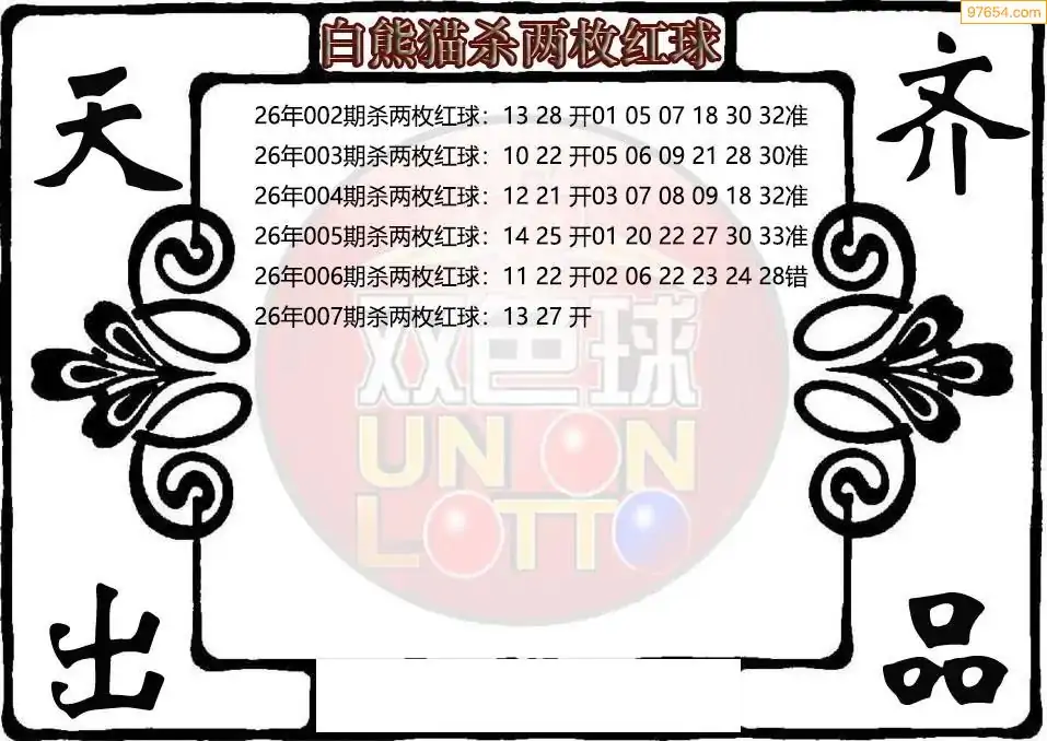 26年双色球007期白熊猫杀两枚红球图谜
