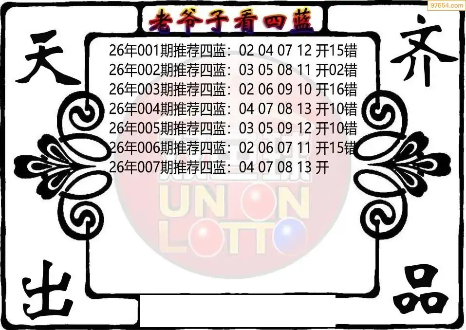 26年双色球007期老爷子四蓝图谜
