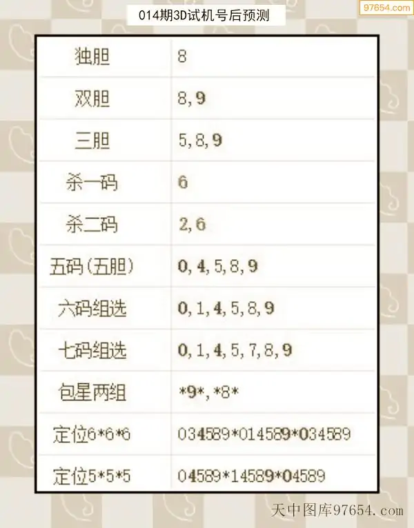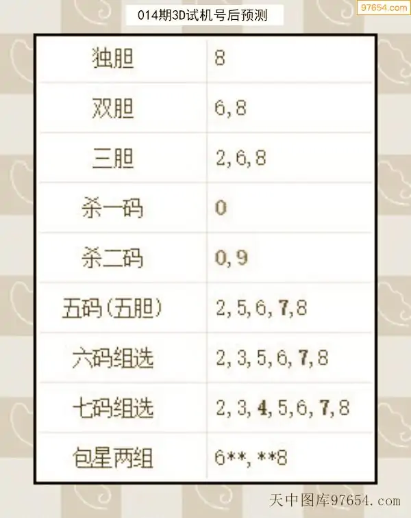 3D014期陈哲友福彩试机号后一语定胆(原创)