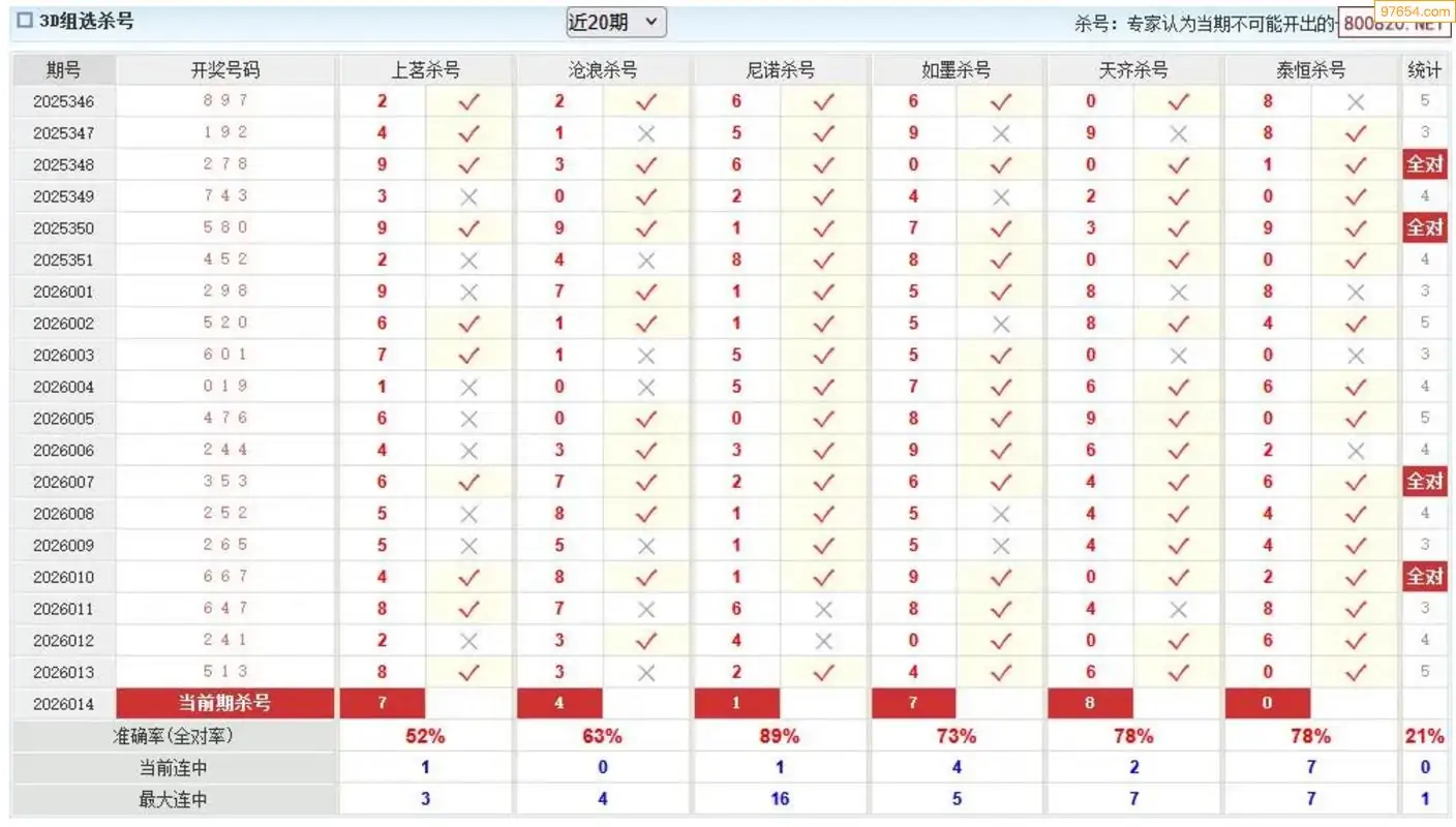 福彩3D26年014期非诚勿扰杀两号 3连中
