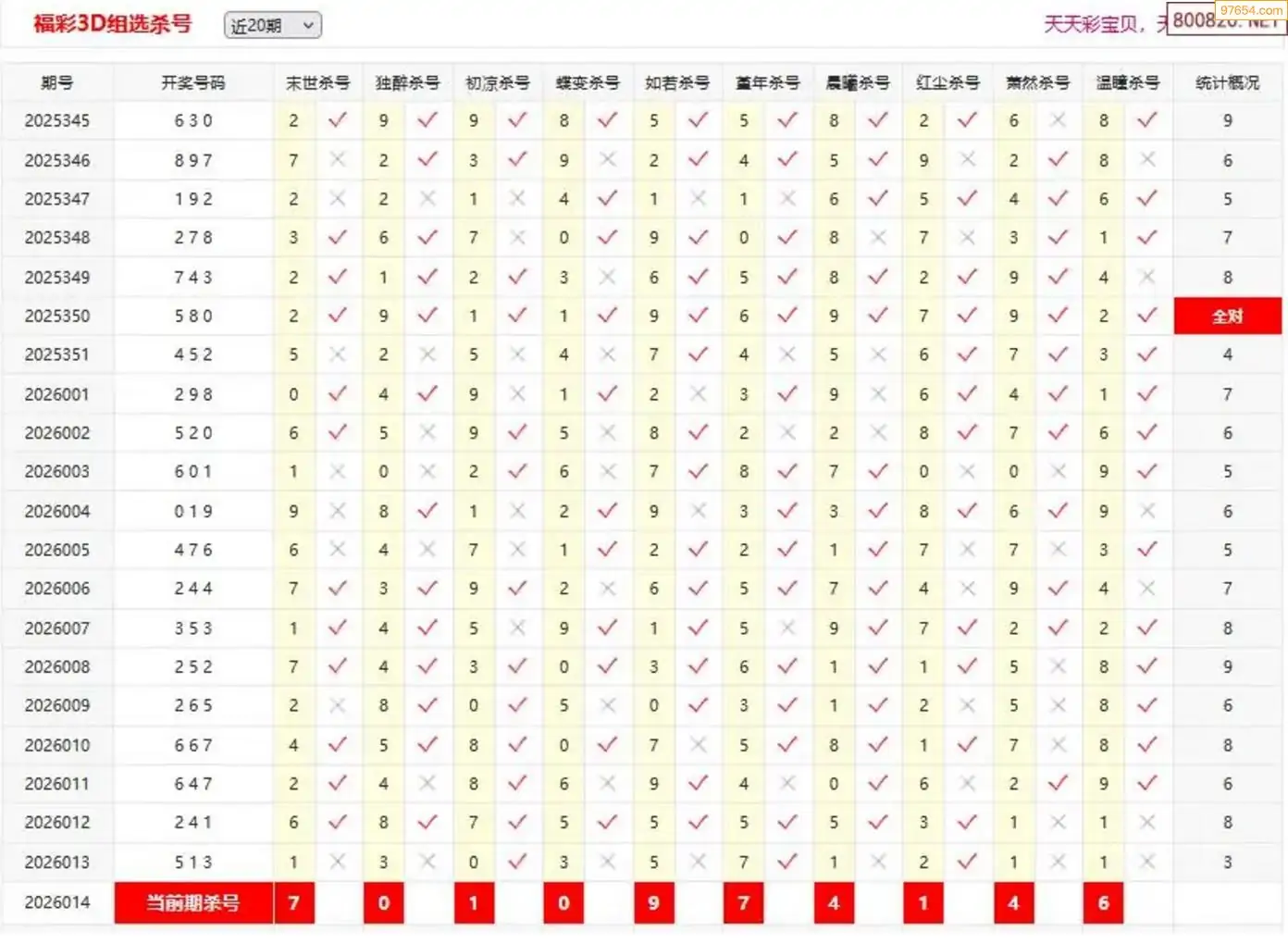 福彩3D26年014期非诚勿扰杀两号 3连中