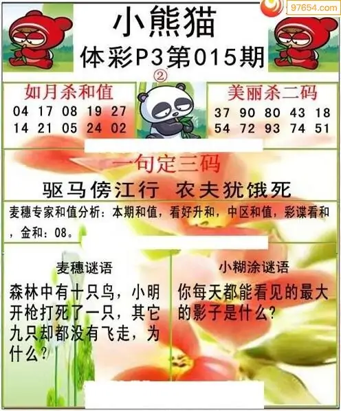 2026年015期P3小熊猫图迷_排三图谜专区