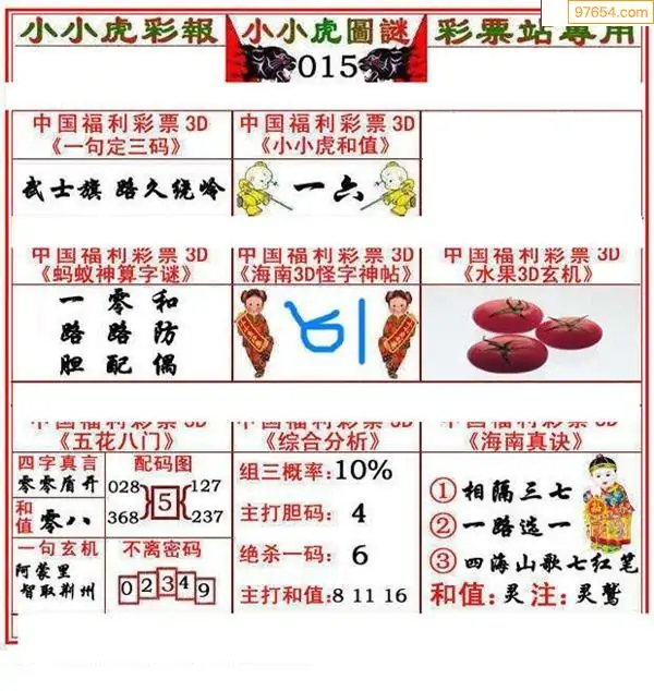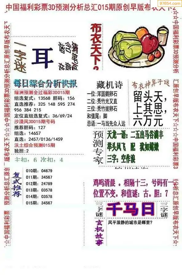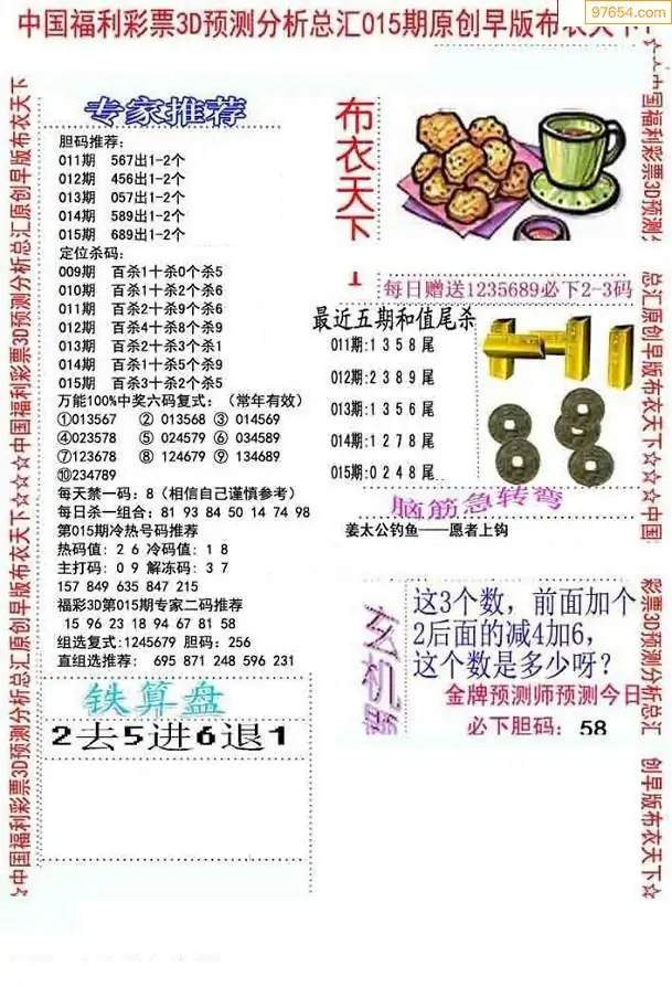 015期3D牛彩预测报+彩吧字谜报