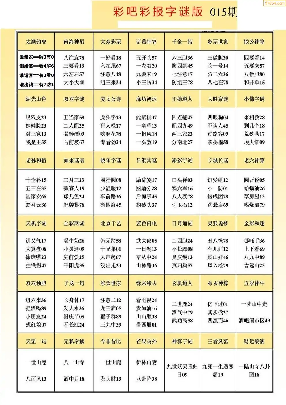 015期3D牛彩预测报+彩吧字谜报
