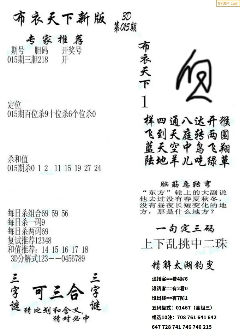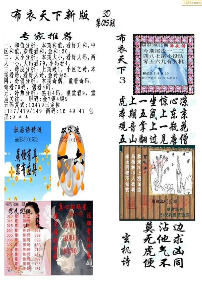 福彩015期3d真精华布衣+布衣早报(转载)