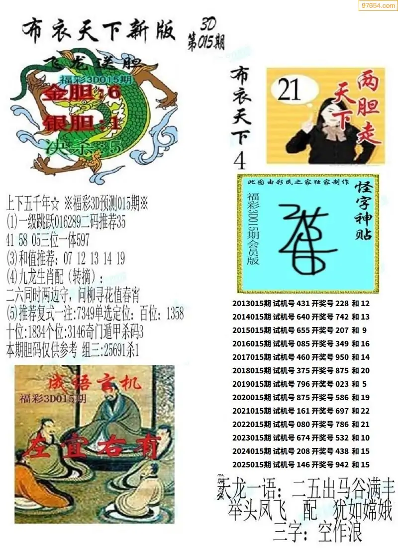 26015期早版布衣天下3D图迷