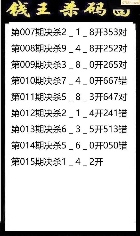 015期97654本站收集杀码出号预测