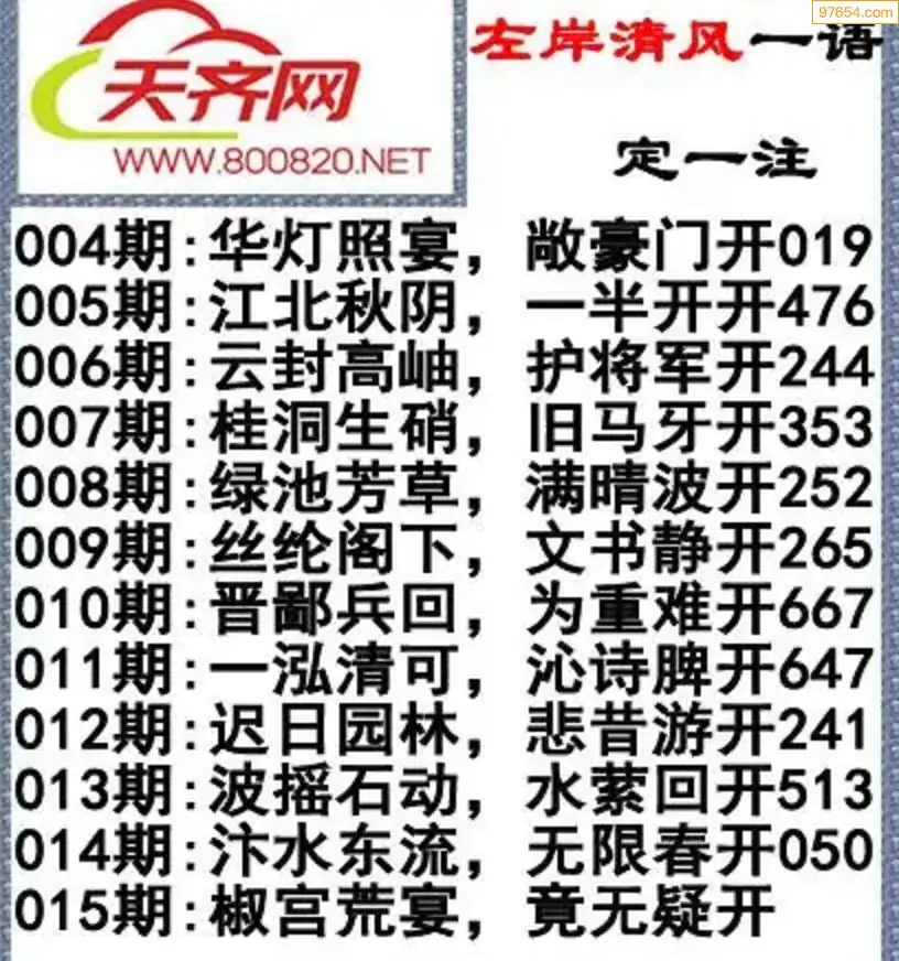 福彩3d左岸清风26年015期一语定一注