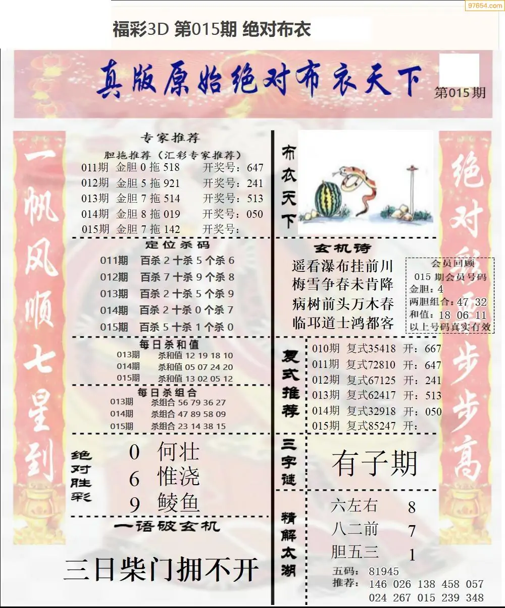 015期绝对布衣3d新版1
