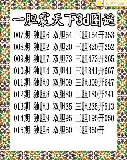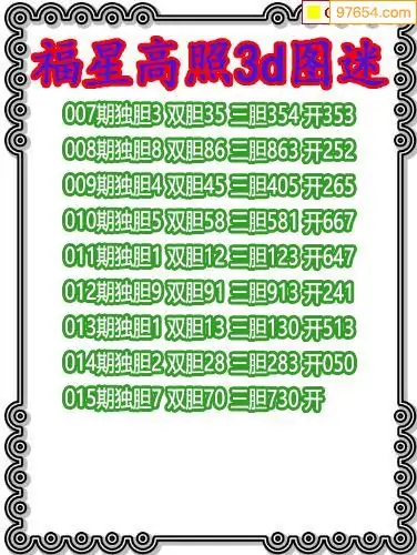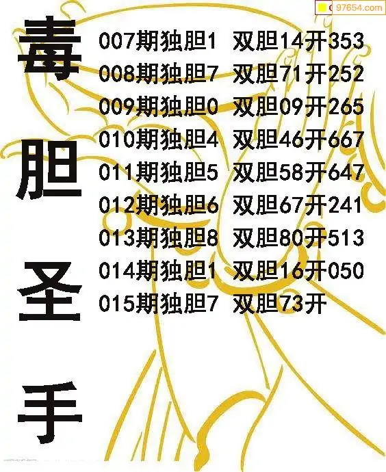 015期97654本站收集胆码出号预测