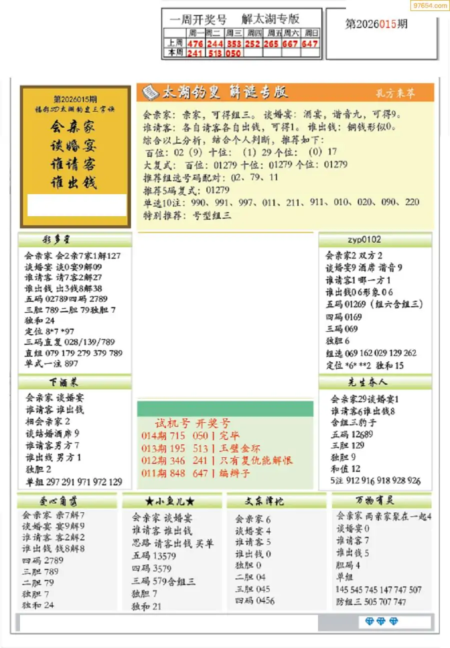 2026年015期电子彩报专家分析