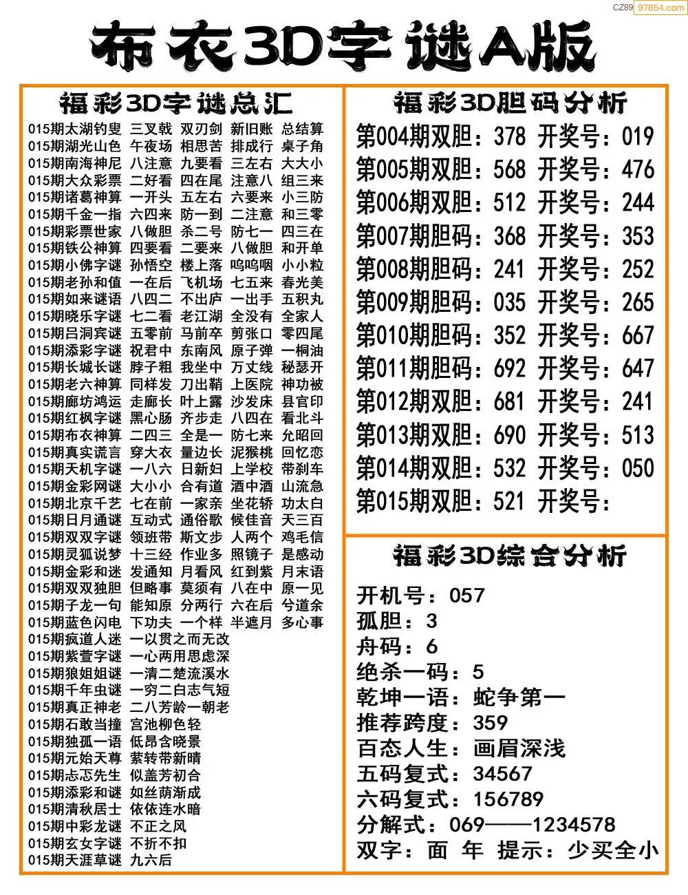 福彩26015期布衣3d字谜ab