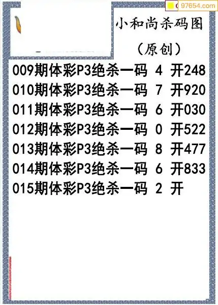 26年015期小和尚排列3杀码图