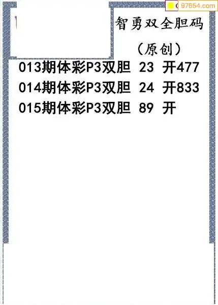 26015期今日P3图迷智勇双全双胆
