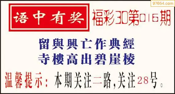 016期97654本站收集胆码出号预测