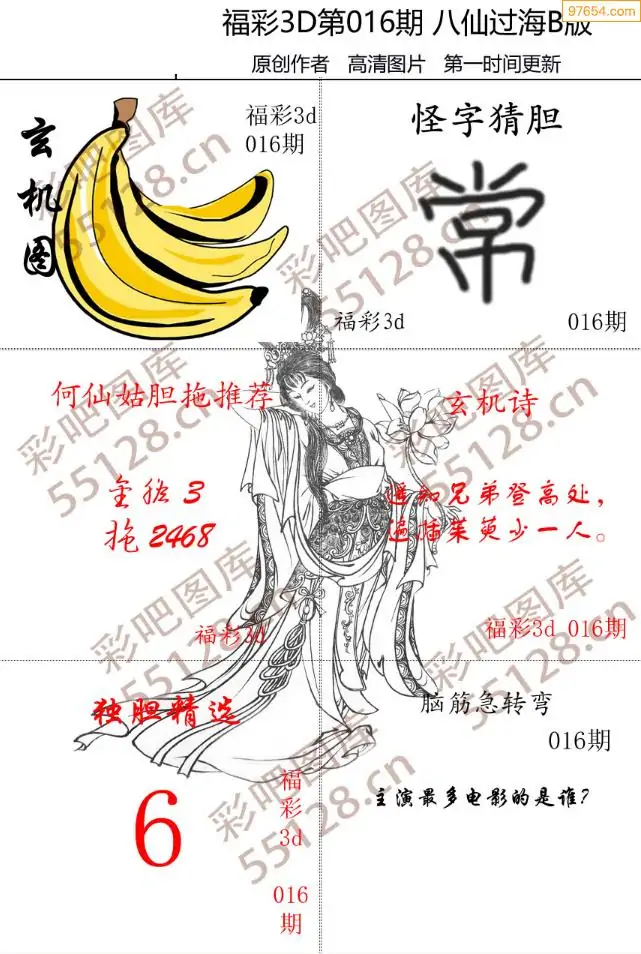 福彩3D26016期蓝仙子一句定三码图谜