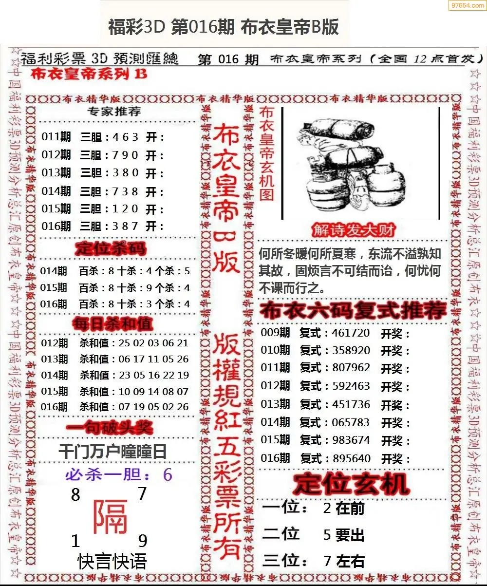 福彩016期3d真精华布衣+布衣早报(转载)