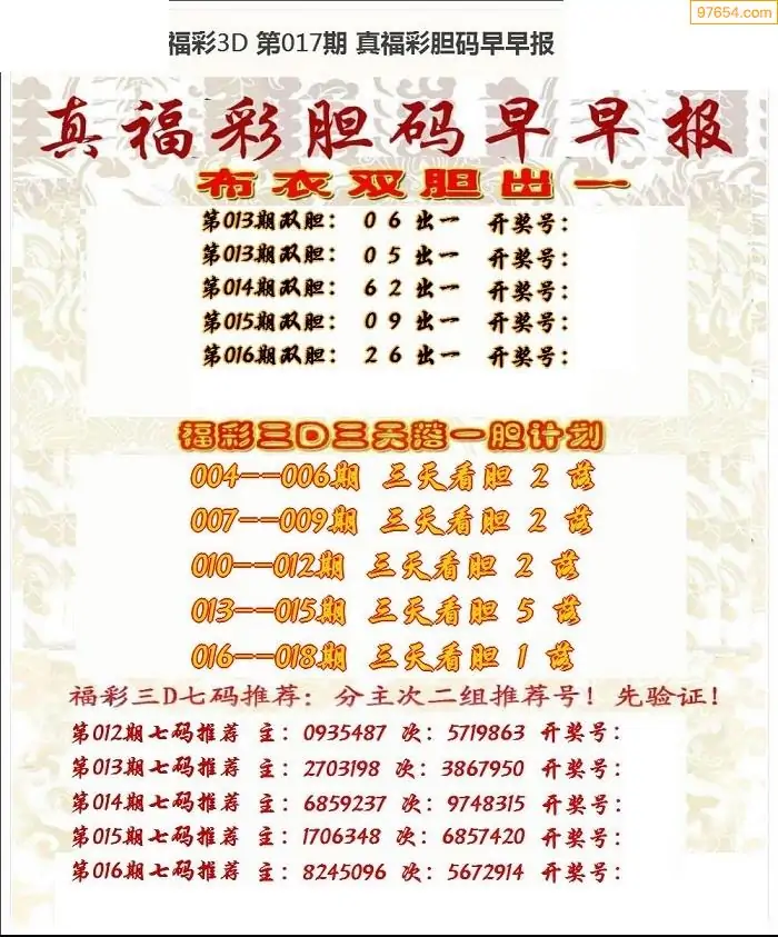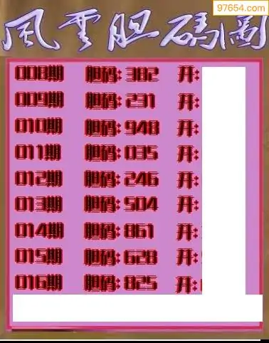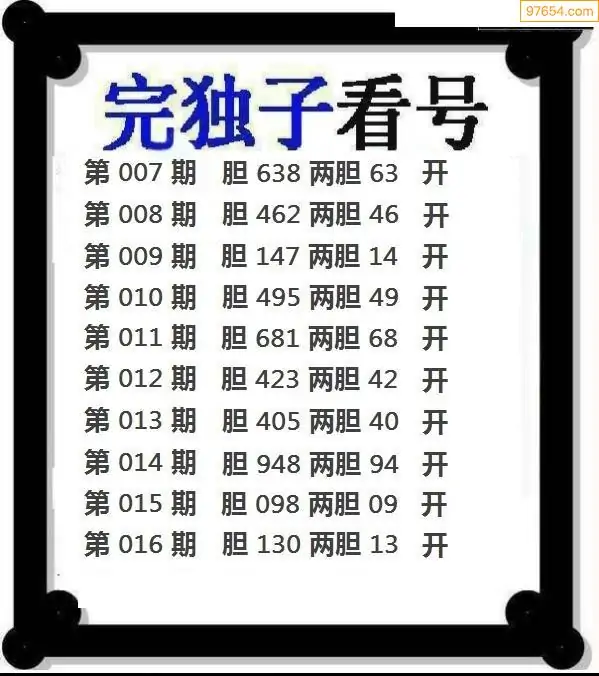 016期97654本站收集胆码出号预测