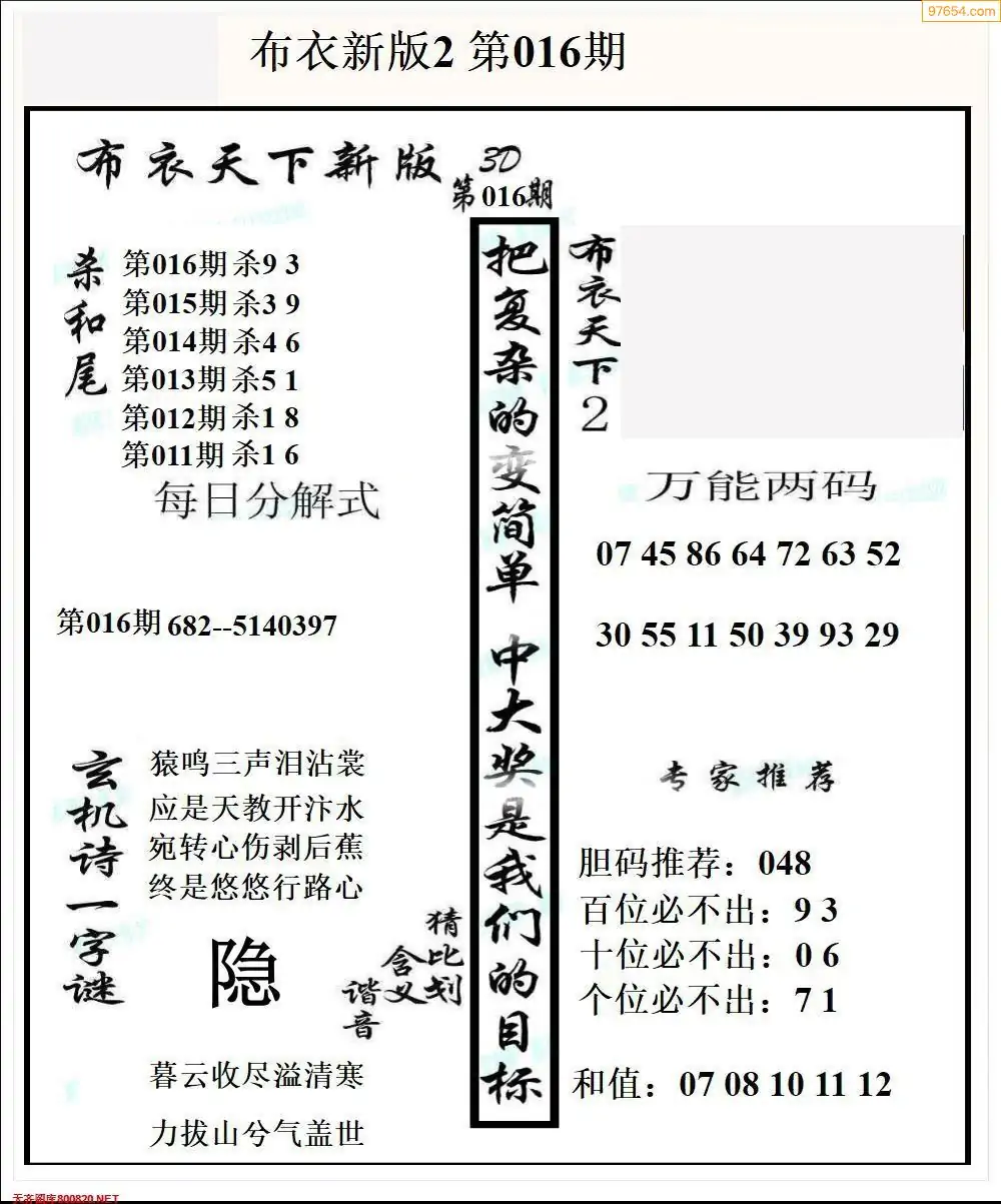 016期真精布衣3d正版布衣123456(原创)
