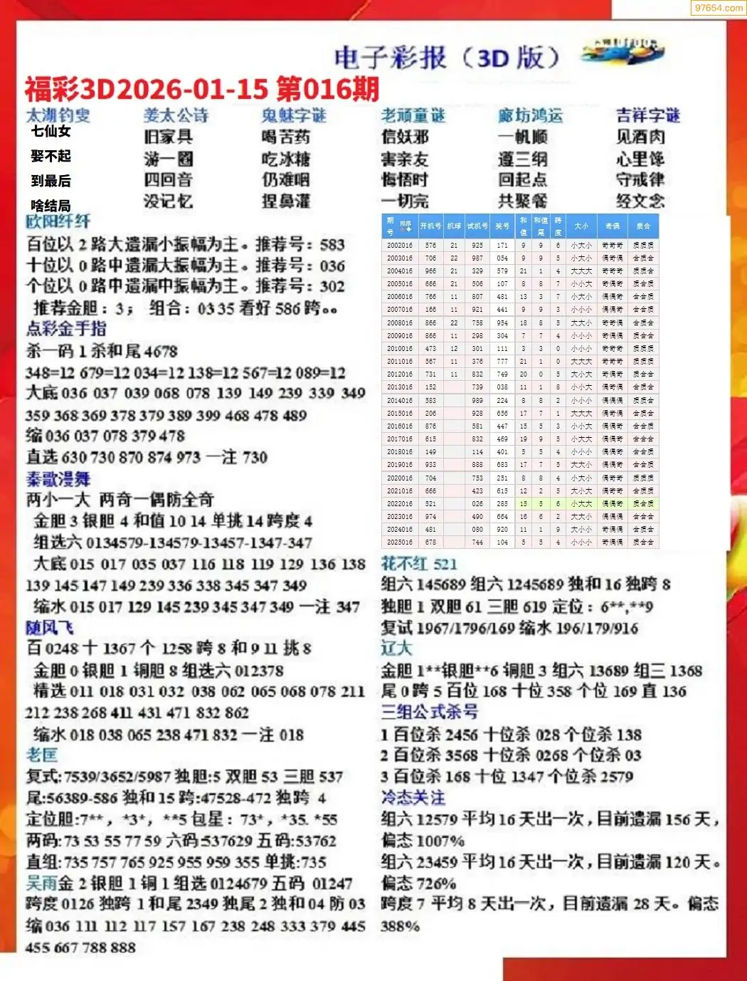 26年016期3D各板块资料整合汇总