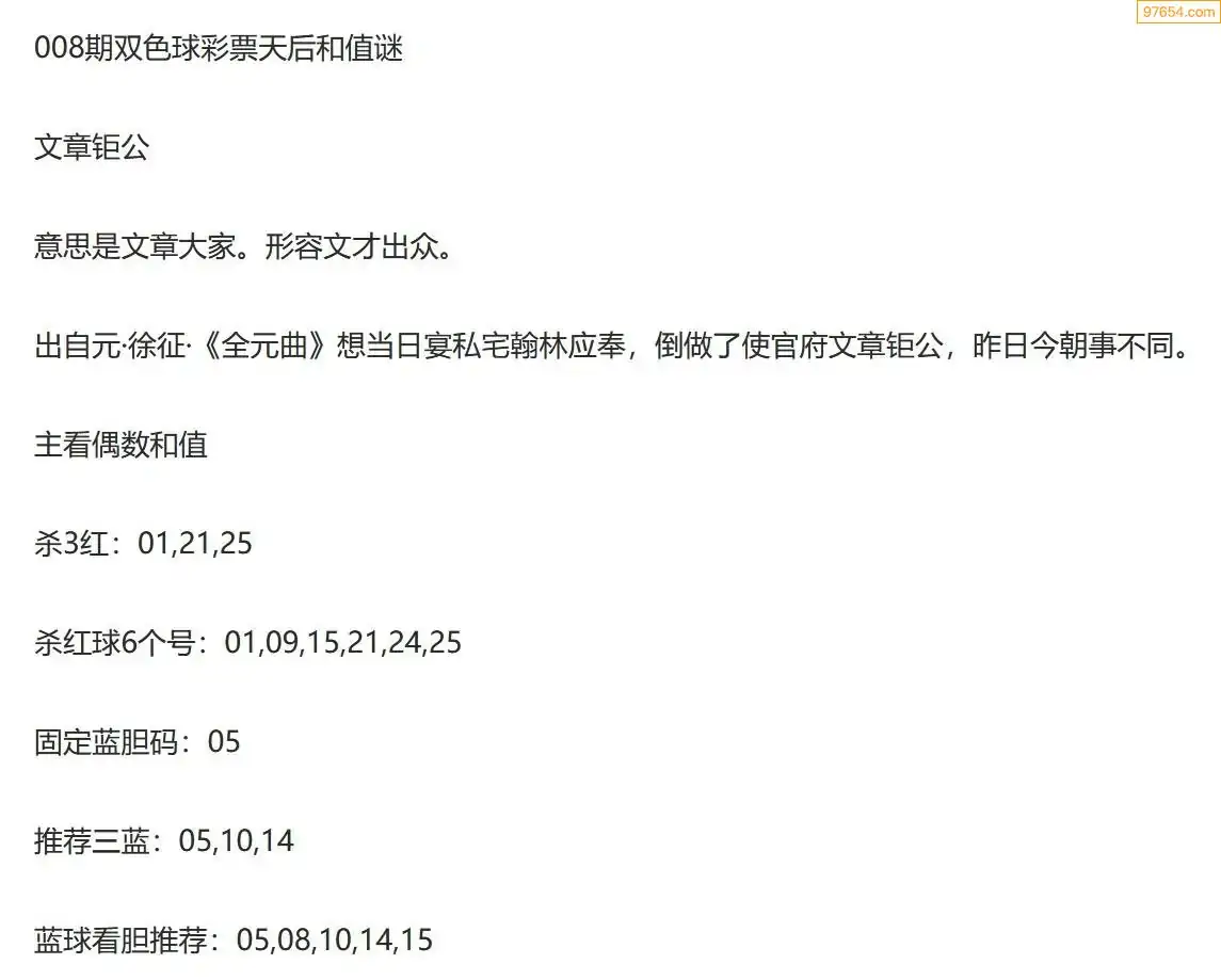 彩票天后双色球26年008期今日和值谜