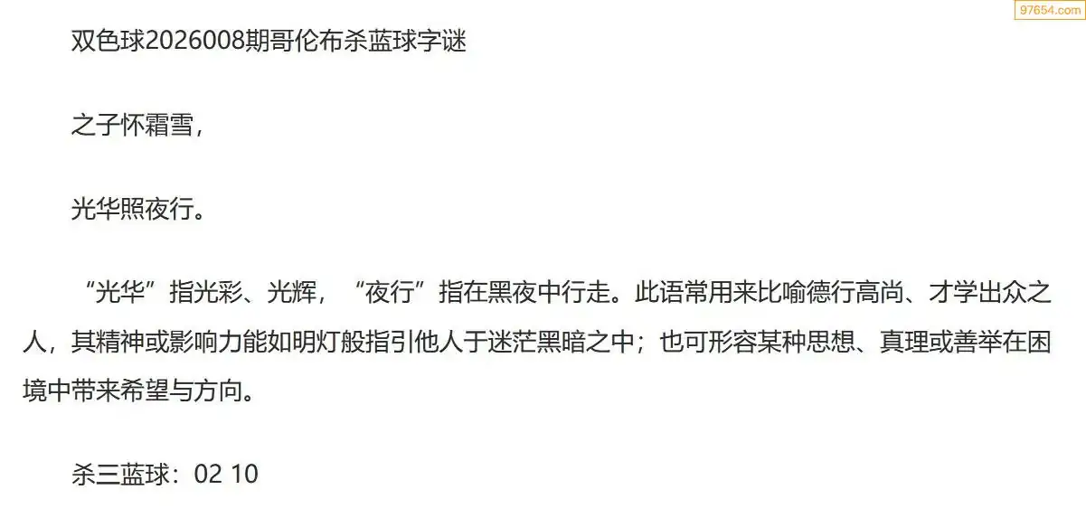 哥伦布双色球26年008期一句杀蓝球字迷