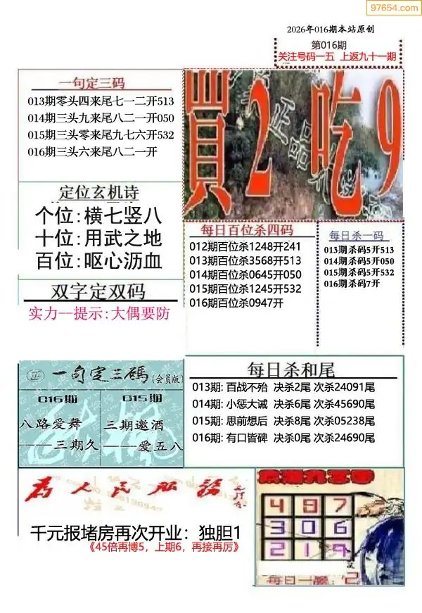 26年016期千元报每日推荐(新版)
