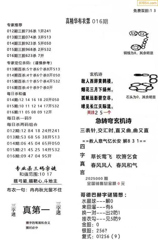 016期真精布衣3d正版布衣123456(原创)