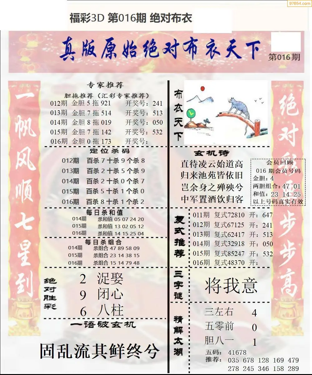 2026016期会员布衣3d图库