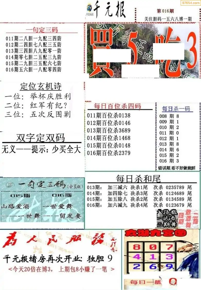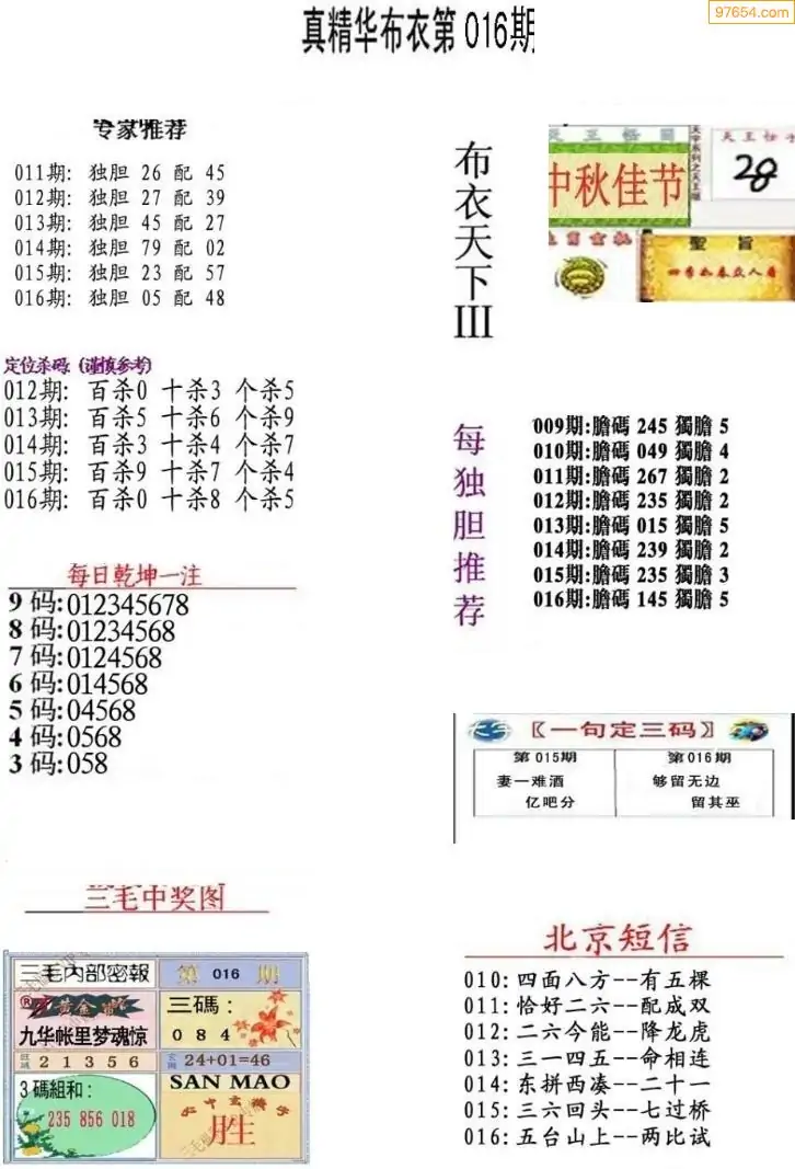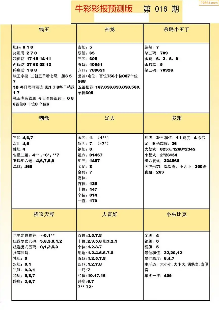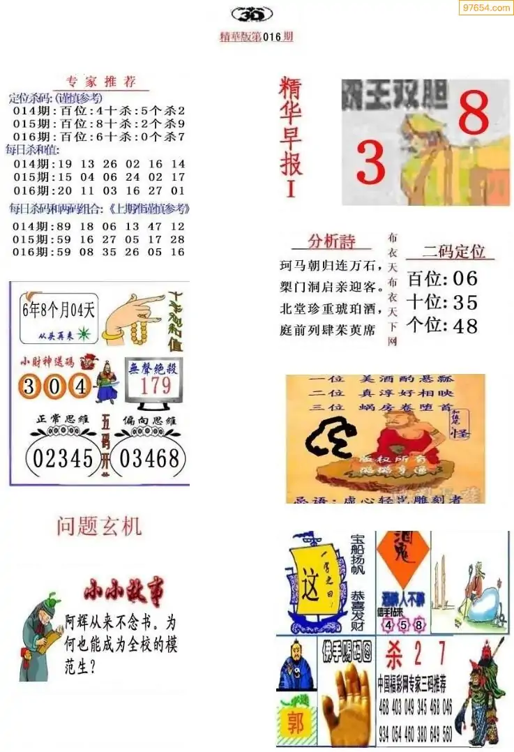 (8)26年016期今日3d各类彩报汇总