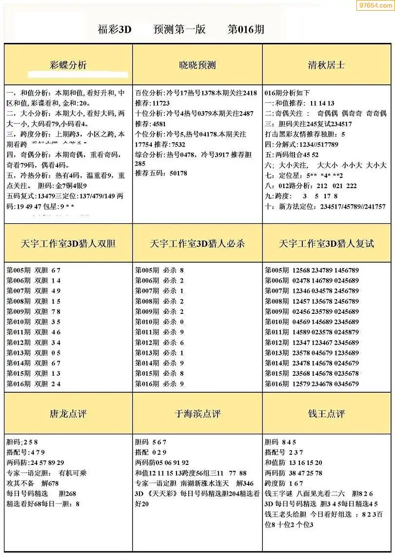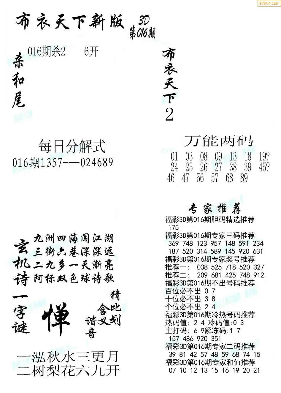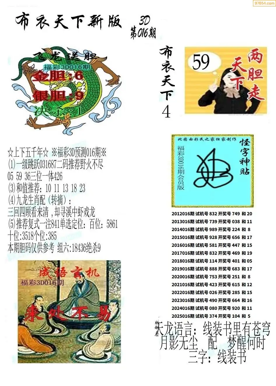 (3)2026016期3D预测总汇全图_福彩3d图谜字谜总汇