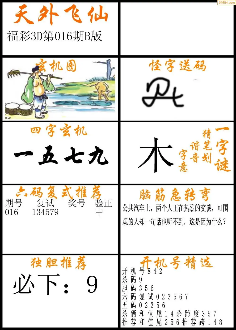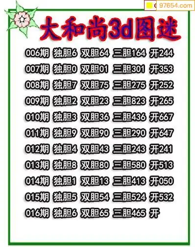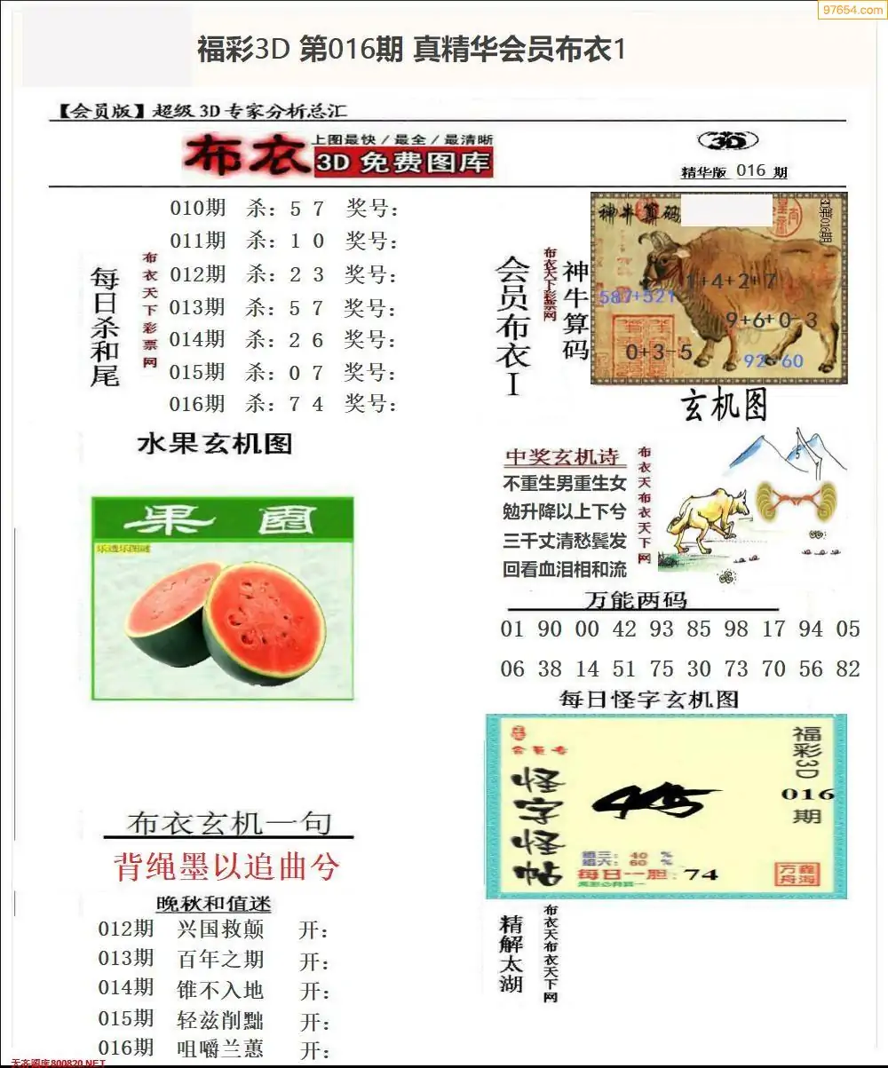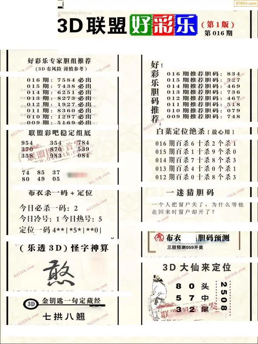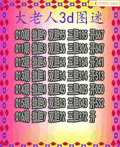 (3)2026016期3D预测总汇全图_福彩3d图谜字谜总汇