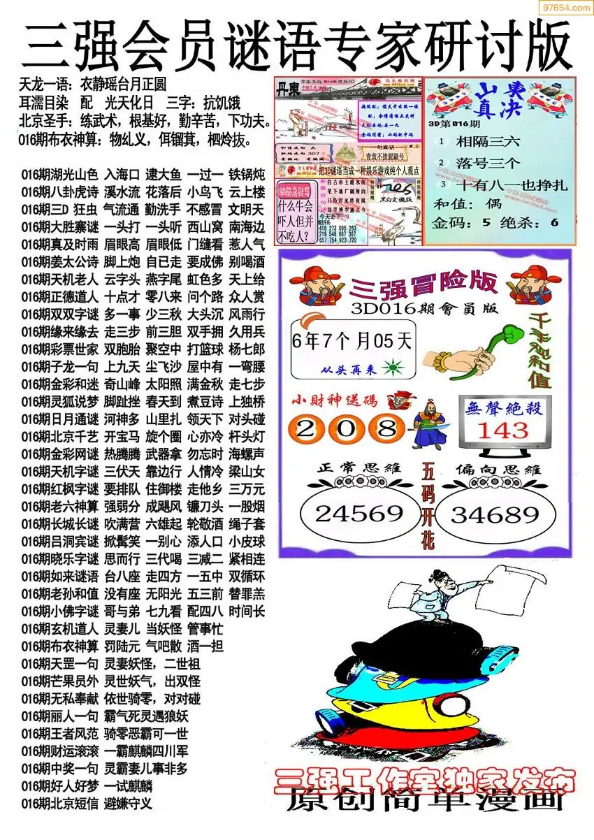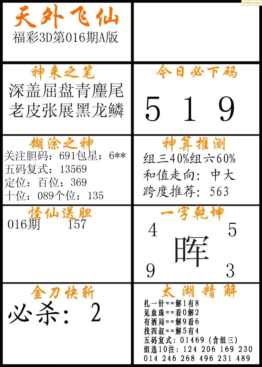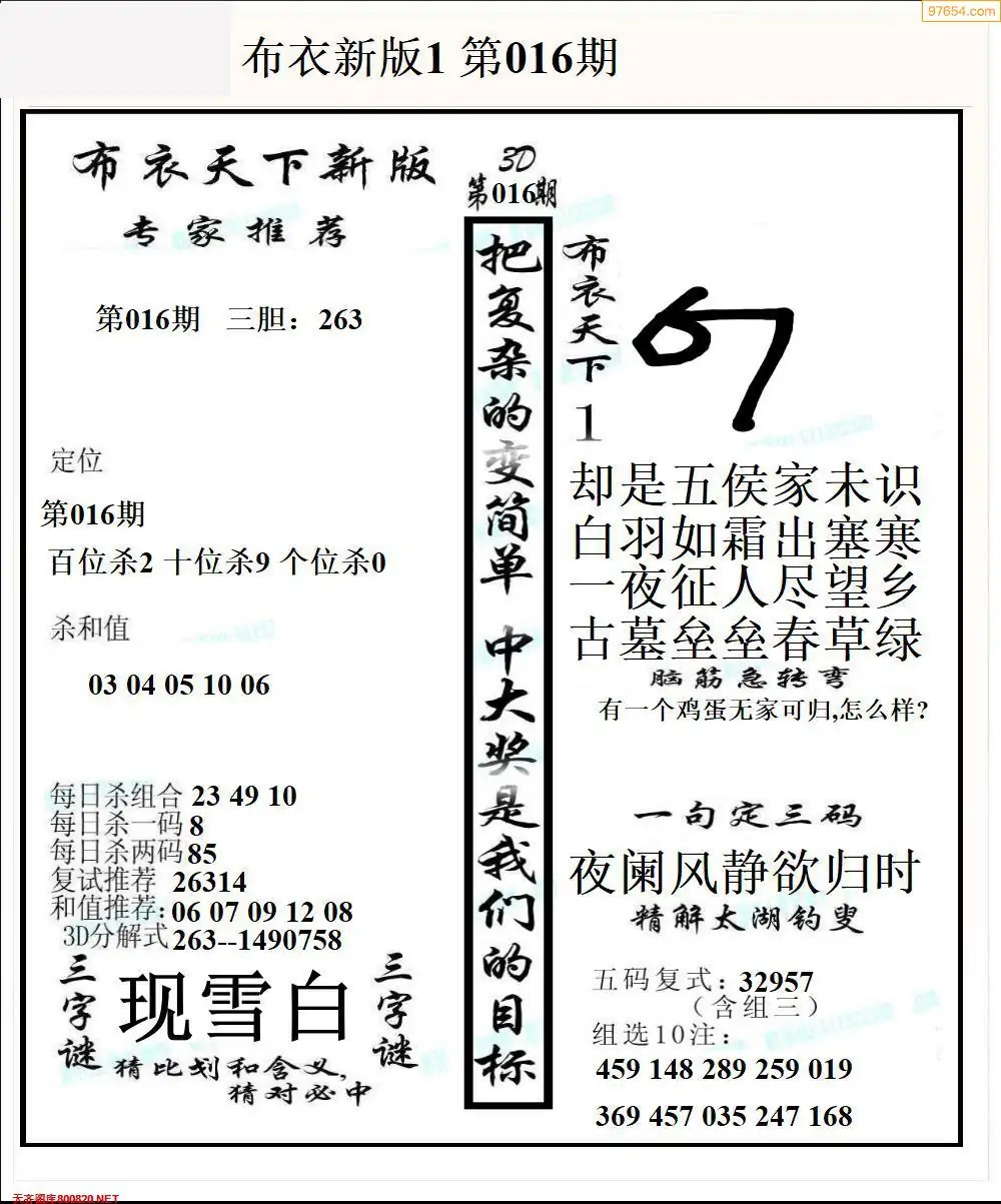 (3)2026016期3D预测总汇全图_福彩3d图谜字谜总汇
