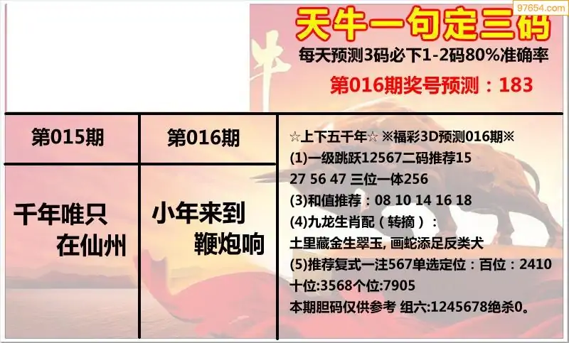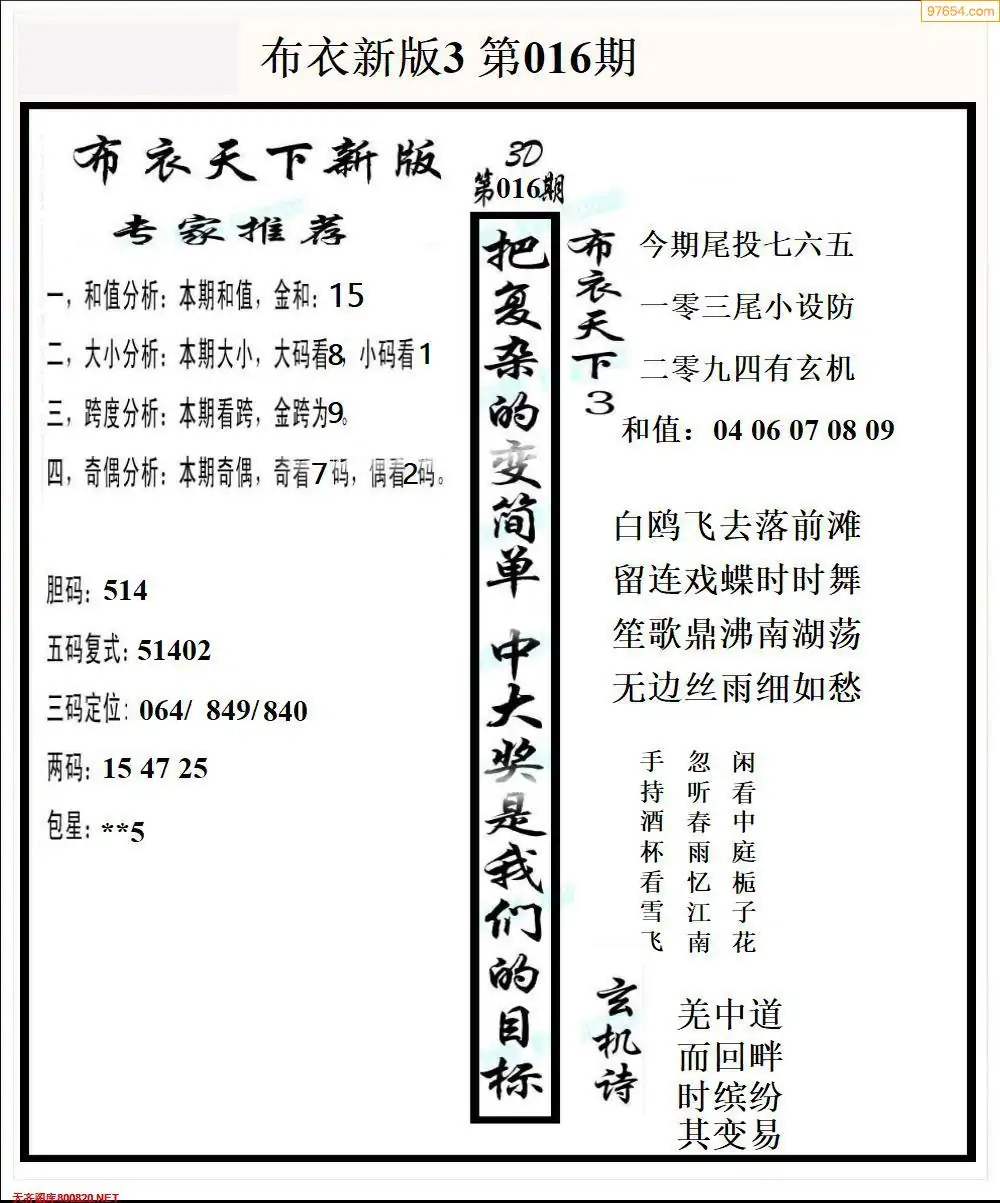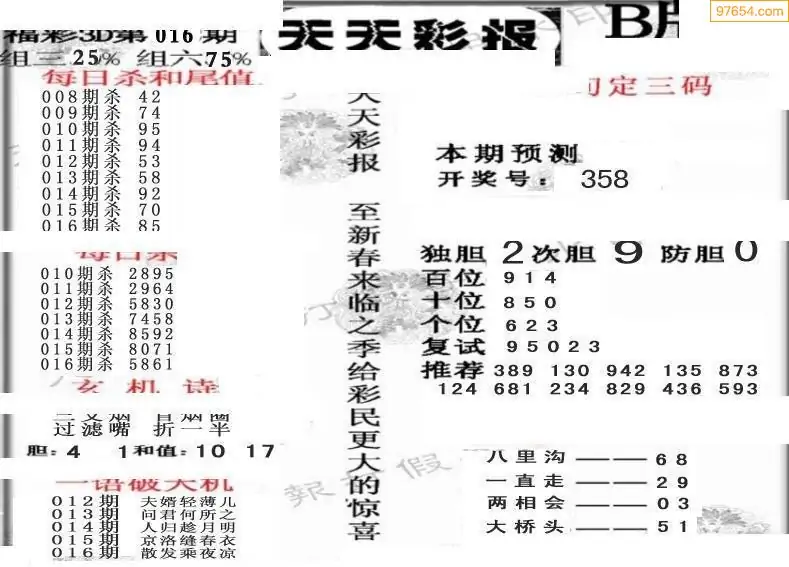 (8)26年016期今日3d各类彩报汇总