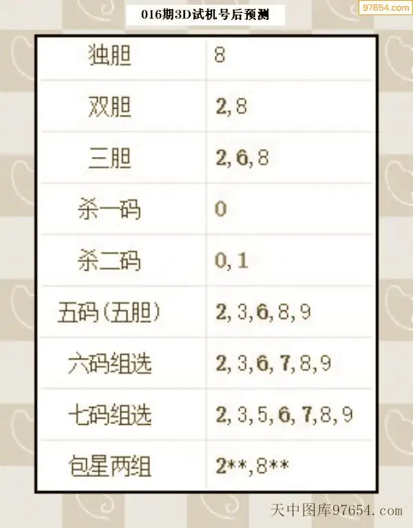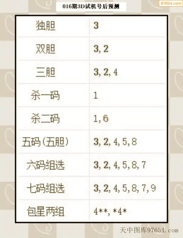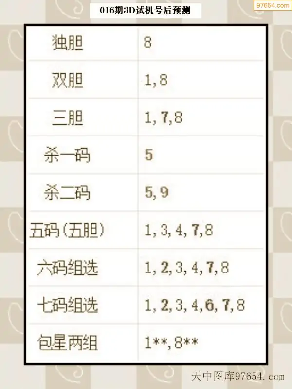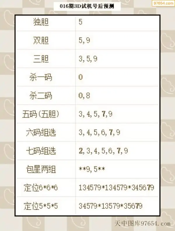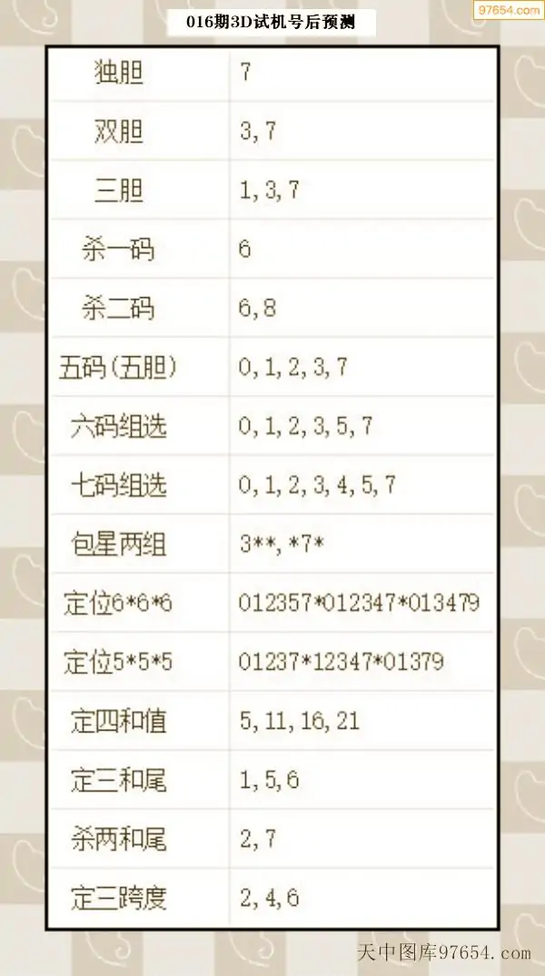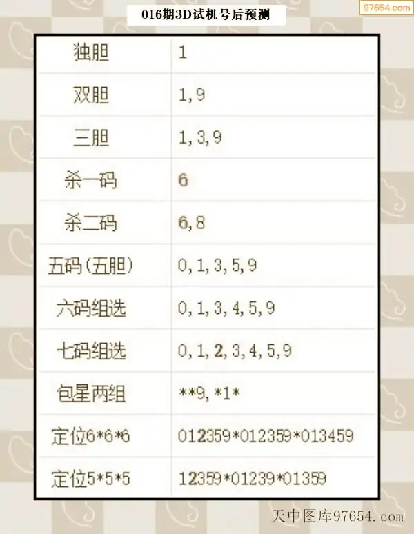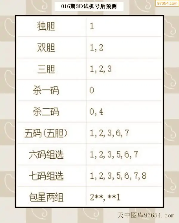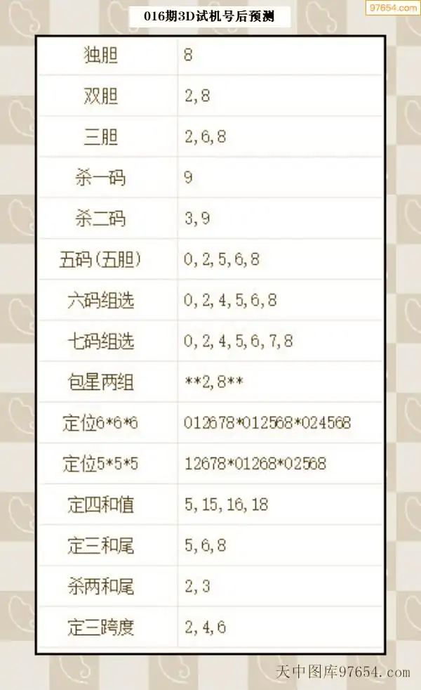 26年015期天中图库专家3D试机号后分析汇总