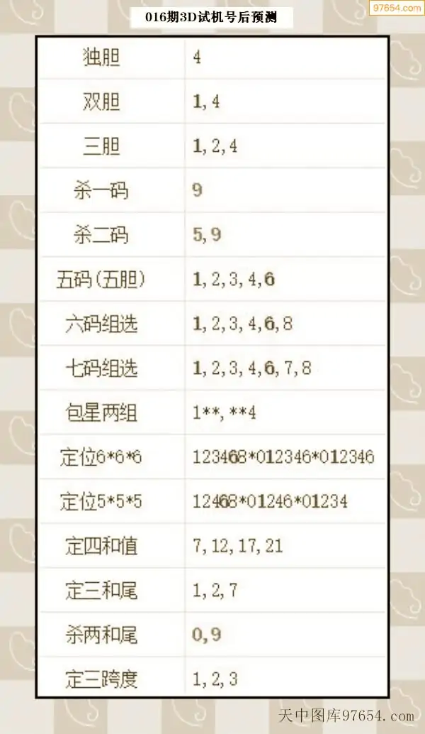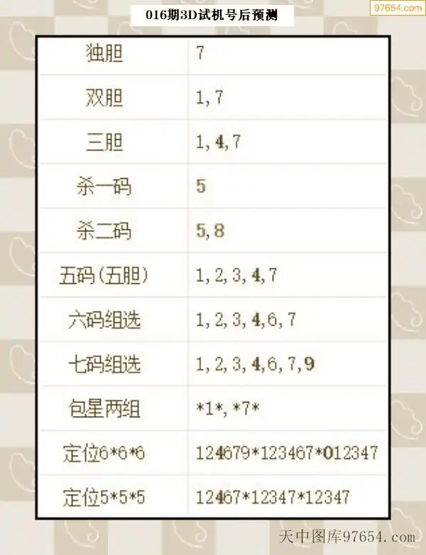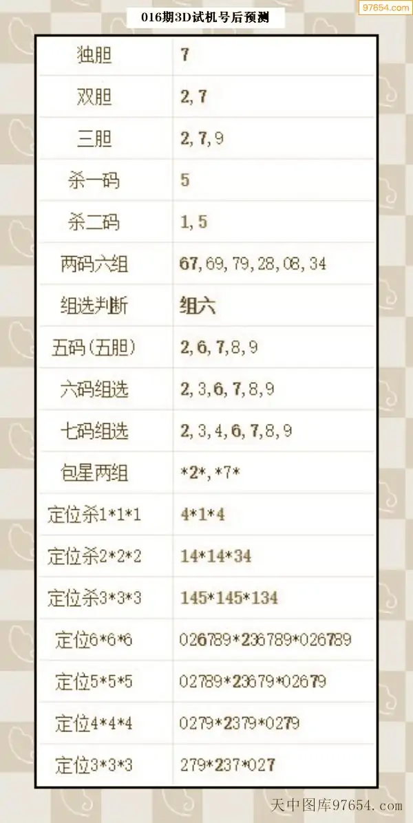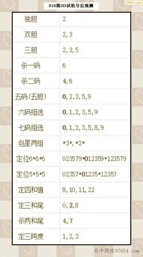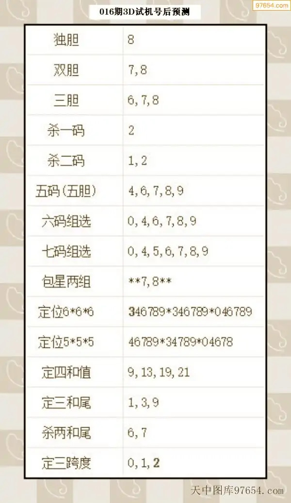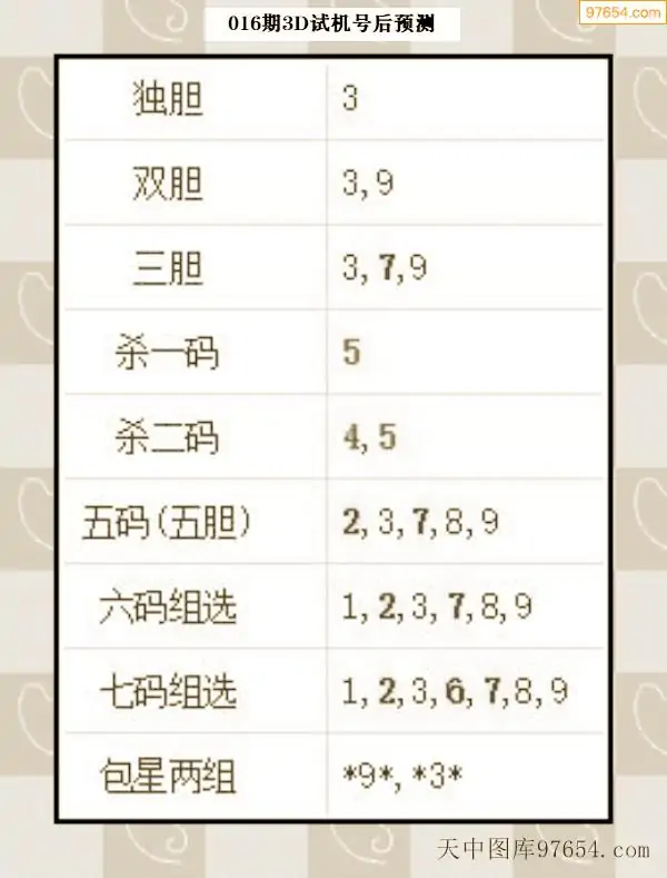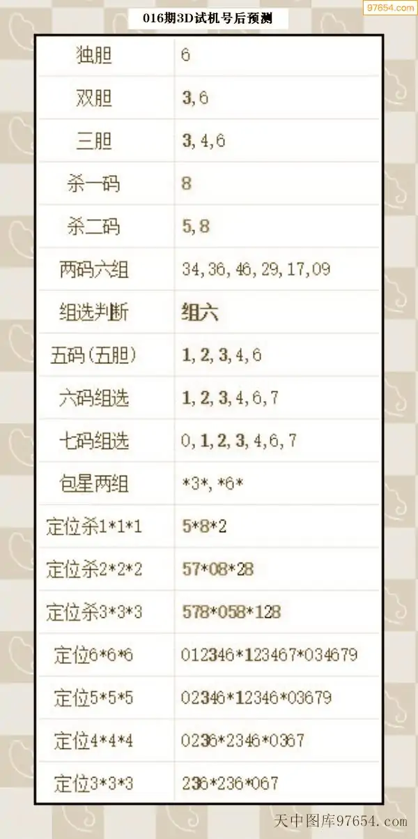 26年015期天中图库专家3D试机号后分析汇总