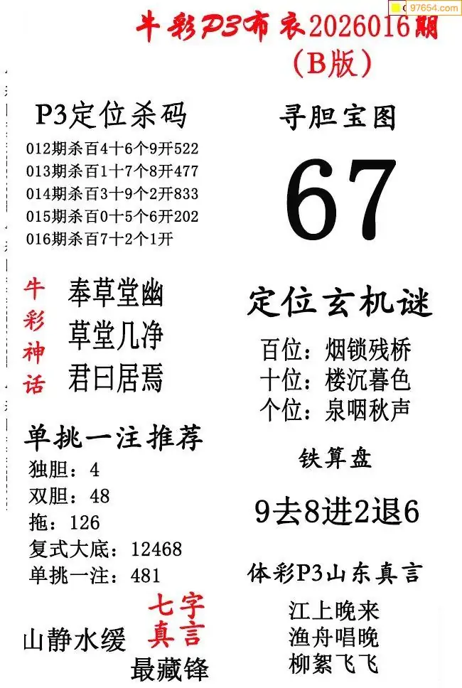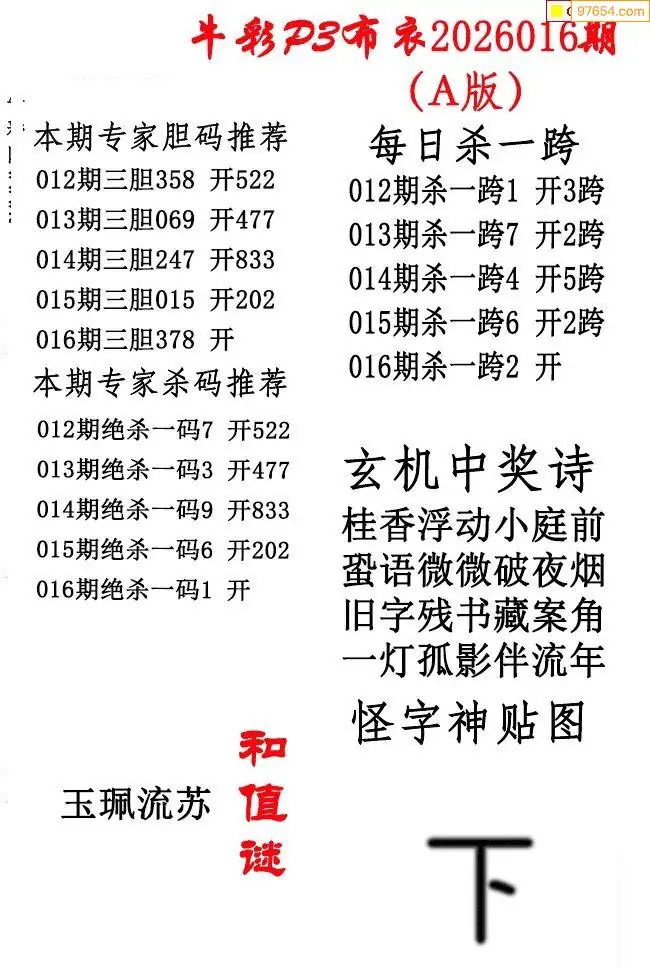 2026016期彩友图迷汇总_体彩排列三字谜图谜总汇最新更新