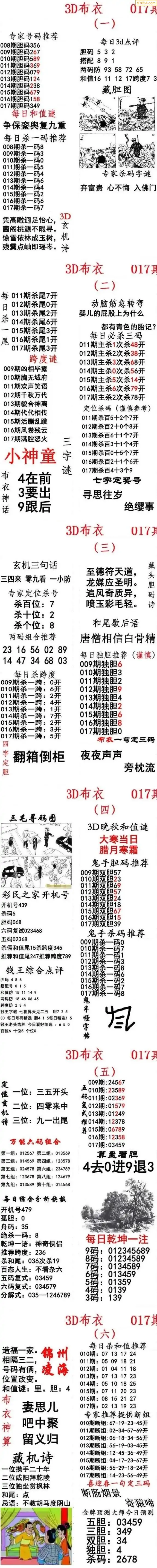 福彩017期3d真精华布衣+布衣早报(转载)