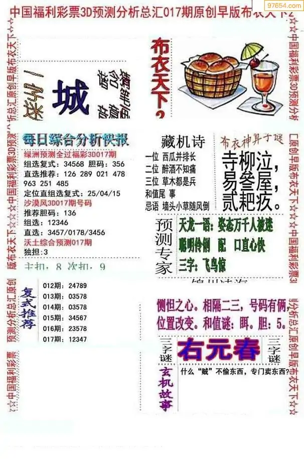 福彩017期3d真精华布衣+布衣早报(转载)