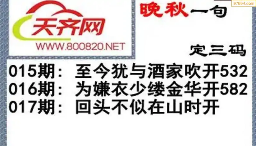 017期3d福彩今日晚秋字谜一句定三码