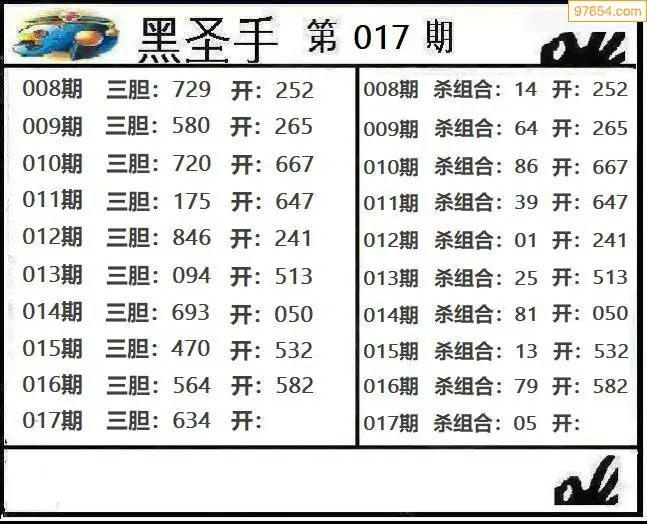 26017期黑圣手 _3d双胆下一