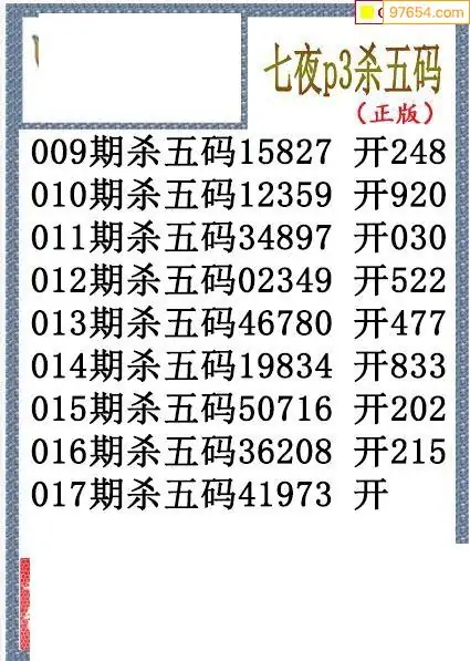 26年017期七夜今期排列3杀码图谜
