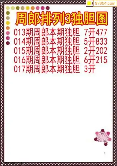 26017期排列3周郎本期独胆图