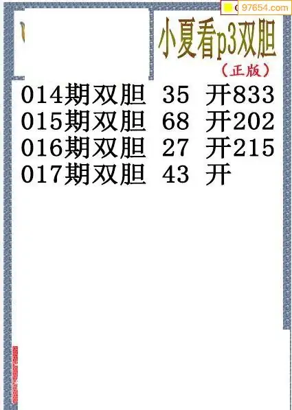 26017期小夏双胆体彩P3图谜