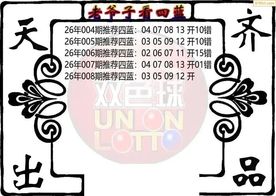 26年双色球008期老爷子四蓝图谜