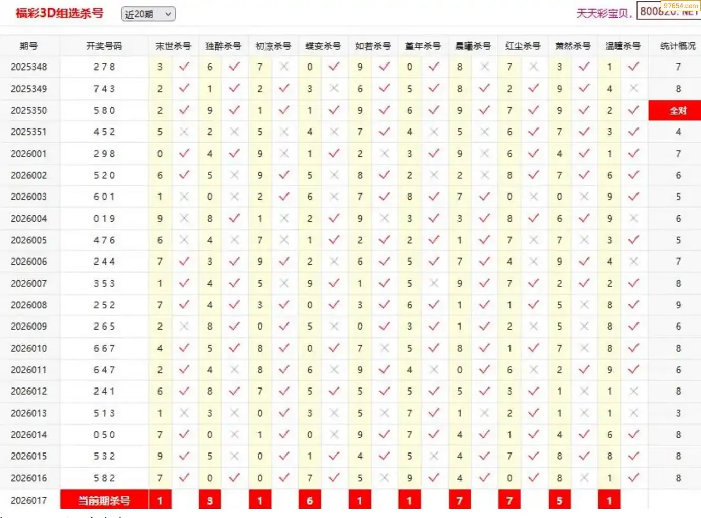 26年017期3d夜叉杀独码 7连中